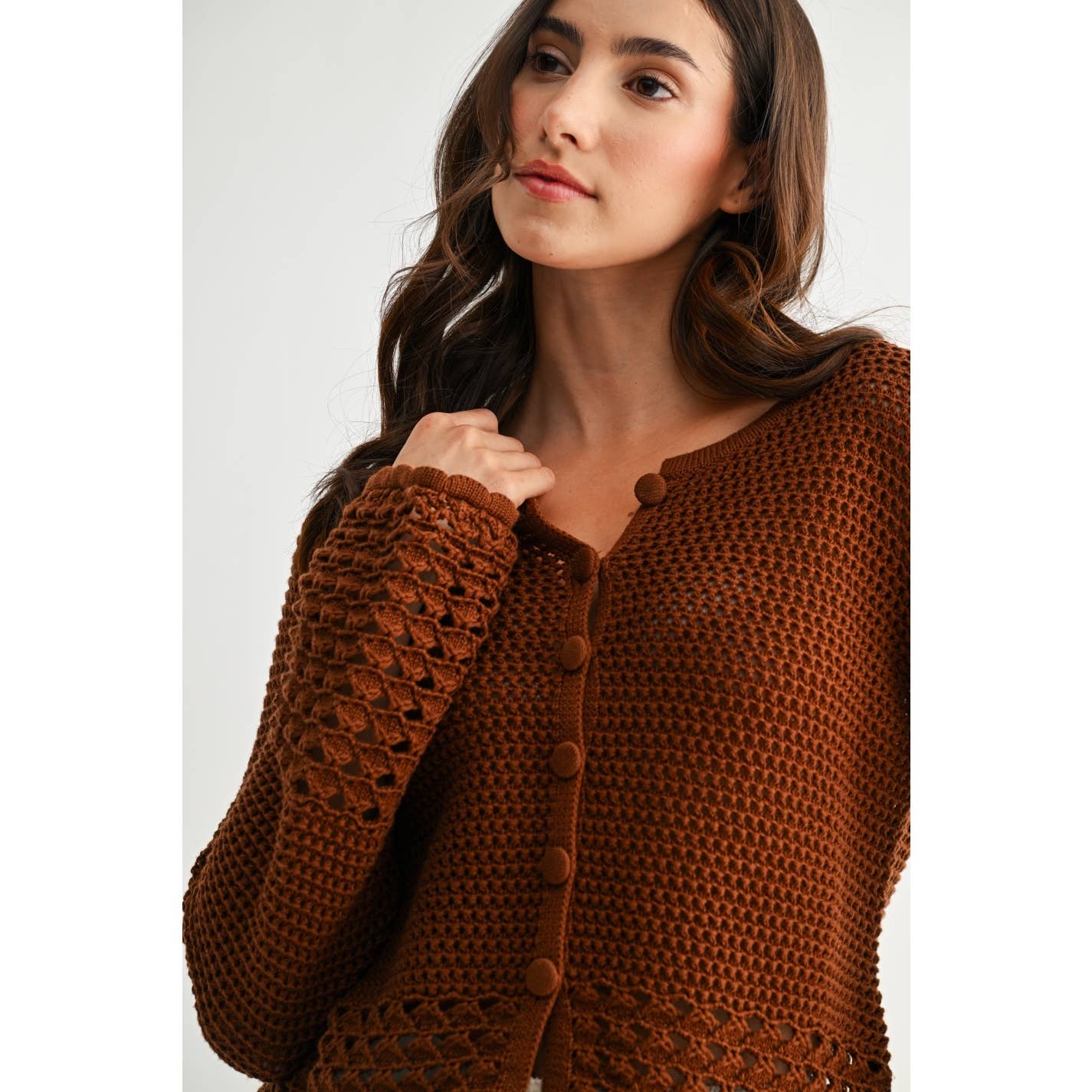 Elevate your wardrobe with our exquisitely crafted Brown Crochet Cardigan, a testament to sophisticated style and unrivaled comfort. Ideal for the discerning professional, this piece effortlessly combines contemporary design with timeless elegance.