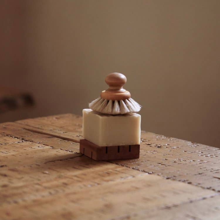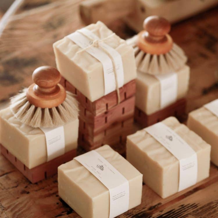 A large and long lasting blend of our cold processed soap, designed for withstanding household dishwashing. Our dish soap is formulated to quickly breakdown debris and oils with a coconut oil based cleansing formula. A rich foamy lather will stretch the period between scrubbing and re-lathering the brush. This soap can also be rubbed into fabric or carpet material and used anywhere that needs extra attention that a regular soap bar will not suffice. A multipurpose cleansing staple for the natural home.
