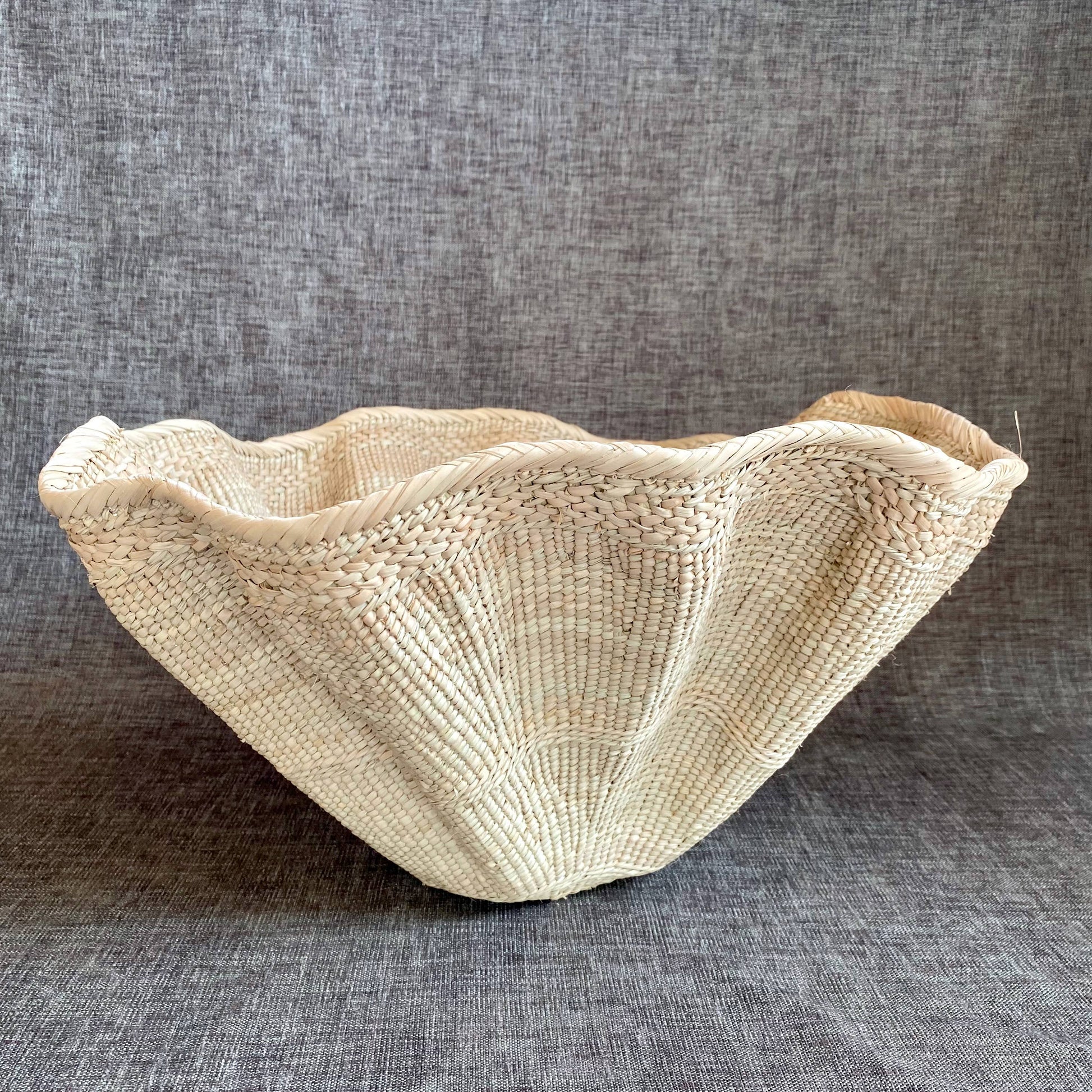 This organic shaped basket is made by a cooperative of Tonga women.