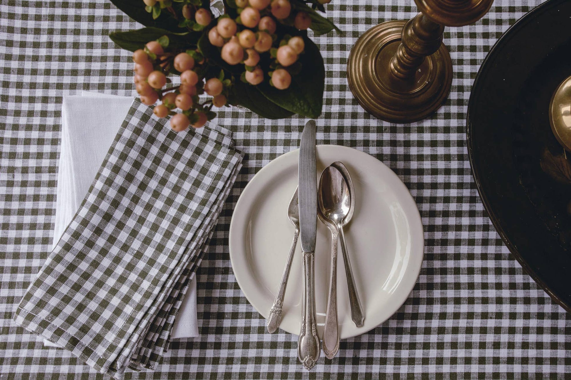 Linen Dinner Napkin | Olive Gingham