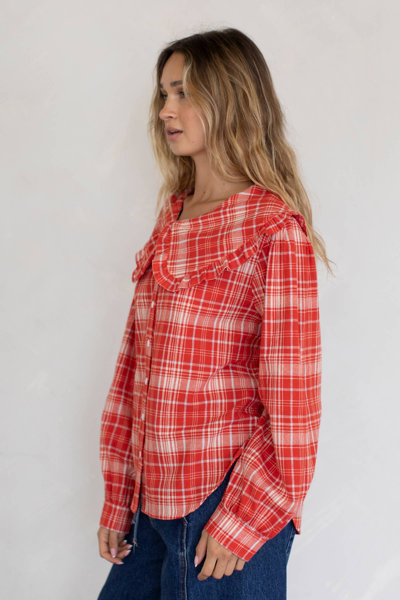 Lightweight blouse with a modern plaid print. Easy to pair and ideal for adding patterns to everyday outfits.